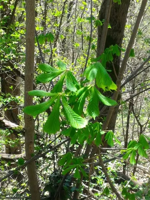 欧洲七叶树 落叶乔木,通常高达25-30米,胸高直径2米。小枝淡绿色或淡紫绿色,嫩时被棕色长柔毛,其后无毛。冬芽卵圆形,有丰富的树脂。掌状复叶对生,有5-7小叶;小叶无小叶柄,倒卵形,长10-25厘米,宽5-12厘米,先端短急锐尖,基部楔形,边缘有钝尖的重锯齿,上面深绿色,无毛,下面淡绿色,近基部有铁锈色绒毛,主脉凸起,侧脉约18对,在两面均显著;叶柄长10-20厘米,无毛。
