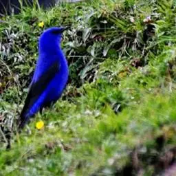 蓝大翅鸲是鹟科、大翅鸲属小型鸟类,体长19-21厘米。两翅尖长。雄鸟通体鲜紫蓝色具金属光泽。…