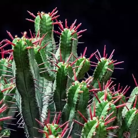魁伟玉原产南非,是一种大戟科的多年生肉质植物,植株具粗圆筒形肉质茎,有10条以上的突出棱,…