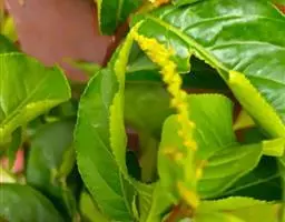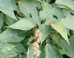 雌雄异株,雄花序穗状,1-3个生于一年生枝已落叶腋部,长1.5-2.5(-3.5)厘米,花序梗几无,呈葇荑花序状,苞片卵形,长约2毫米,顶端近急尖,具柔毛,未开花时覆瓦状密生,雄花5-6朵簇生于苞腋,花梗长约2毫米,无毛,基部具关节;小苞片长约2毫米;雌花序总状,顶生,长4-8厘米,具花4-7朵,各部均被短柔毛,苞片三角形,长3.5毫米,小苞片披针形,长3.5毫米;花梗短,长约。5毫米;雄花:花萼花蕾时球形,无毛,直径约2毫米,萼片3(-4)枚;雄蕊6-8枚;雌花:萼片5枚,长三角形,长2.5-3毫米,具短柔毛;子房球形,被绒毛,花柱3枚,线状,长10-12毫米,合生部分长1.5-2毫米。蒴果近球形,具3圆棱,直径1-1.2厘米,密生柔毛;种子卵状三角形,长约6毫米,种皮淡褐色或灰色,具小瘤体。花期3-5月,果期6-7月。
