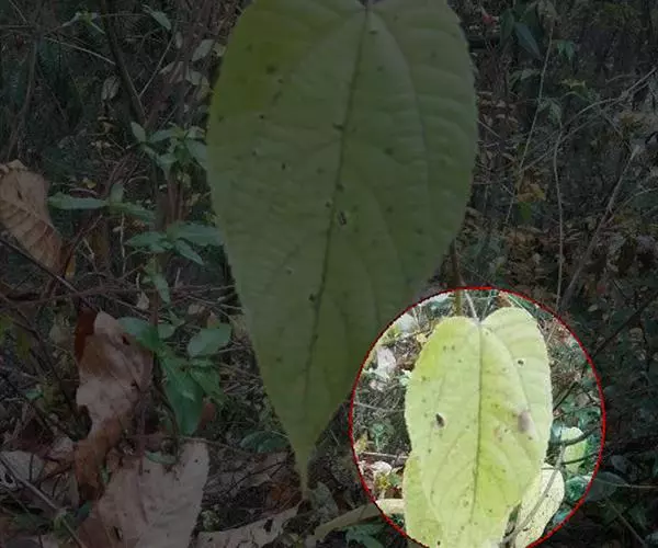 落叶灌木,高1-4(-5)米;嫩枝被灰白色短绒毛,一年生小枝具微柔毛。叶薄纸质,阔卵形或近圆形,长8-15厘米,宽7-14厘米,顶端渐尖,基部心形、浅心形或近截平,边缘具粗锯齿或具细齿,齿端具腺体,上面沿叶脉具短柔毛,下面被短柔毛,基部具斑状腺体2或4个;基出脉3条;小托叶线状,长3-4毫米,具短毛;叶柄长2-10厘米,具短柔毛,托叶披针形,长6-8毫米,基部宽1-1.5毫米,具短毛,早落。