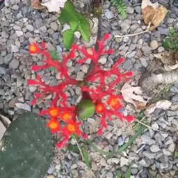 变叶珊瑚花,是大戟科麻风树属常绿灌木。变叶珊瑚花单叶互生,倒阔披针形,叶面为浓绿色,叶背为紫绿色,…