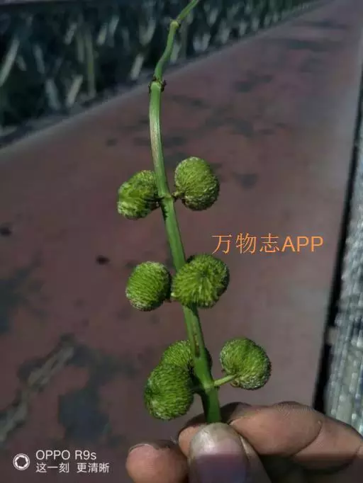 该变种与原变种不同在于:植株高大,粗壮;叶片宽大,肥厚,顶裂片先端钝圆,卵形至宽卵形;匍匐茎末端膨大呈球茎,球茎卵圆形或球形,可达5-8×4-6厘米;圆锥花序高大,长20-60厘米,有时可达80厘米以上,分枝(1-)2(-3),着生于下部,具1-2轮雌花,主轴雌花3-4轮,位于侧枝之上;雄花多轮,生于上部,组成大型圆锥花序,果期常斜卧水中;果期花托扁球形,直径4-5毫米,高约3毫米。种子褐色,具小凸起。