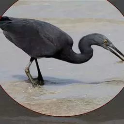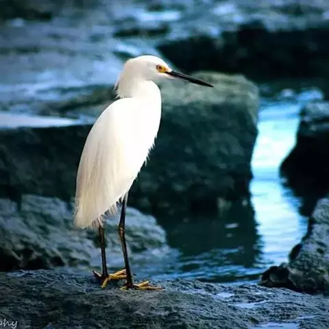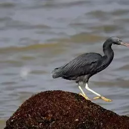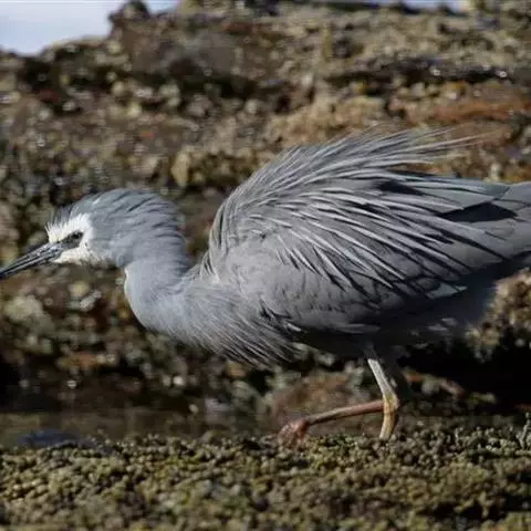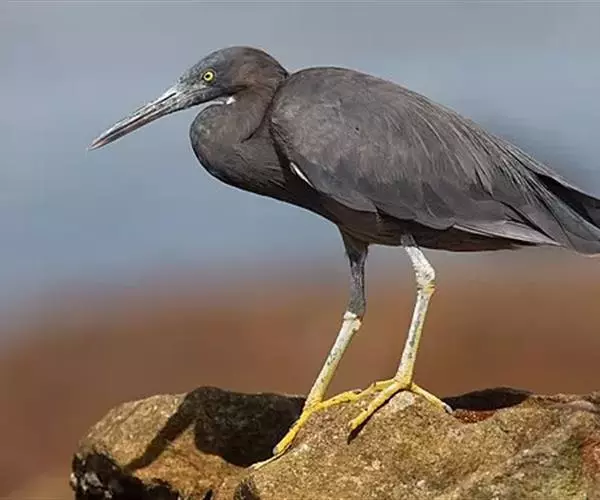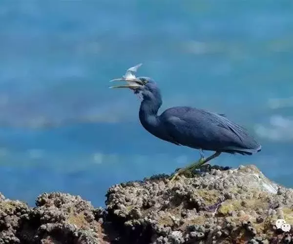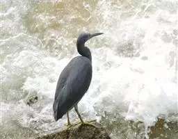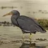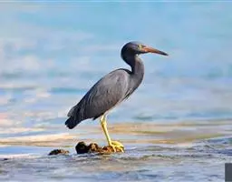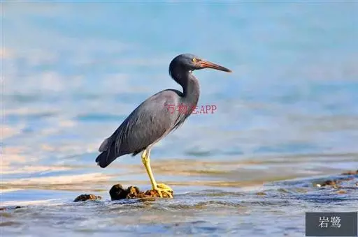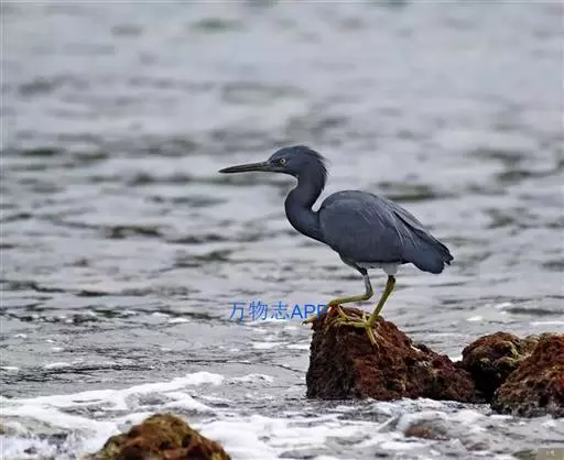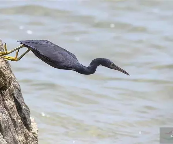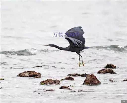 岩鹭(学名:Egretta sacra):中型涉禽,体长60-75厘米,翼长25-30毫米,体重330-700克。嘴较长而粗钝,颈长,脚较粗短,体色有白色和黑色两种色型。黑色型较常见,体羽清一深灰色并具短冠羽,近白色的颏在野外清楚可见。白色型与牛背鹭的区别在体型较大,头及颈狭窄。与其他鹭的区别为腿偏绿色且相对较短,嘴浅色,习性也不同。虹膜黄色;嘴浅黄;脚绿色。