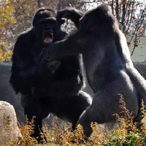 有个惊人的事实:黑猩猩甚至会去吃他们的近亲——其他灵长目动物,如疣猴、狒狒等。他们甚至向同类不同群的黑猩猩发起进攻,从而得到领地和食物,类似于人类的战争。