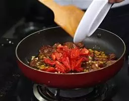 翻炒至出红油后,再放入一匙生抽,料酒翻炒片刻。(如豆瓣酱放的多,也可免放生抽,不然会太咸)