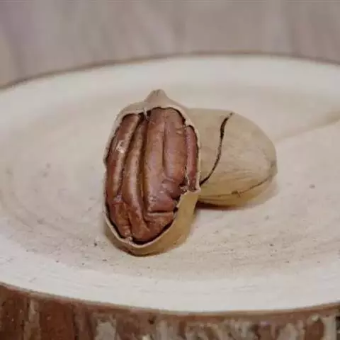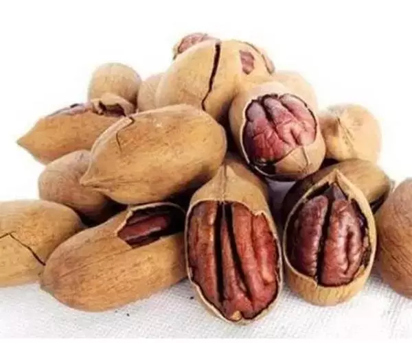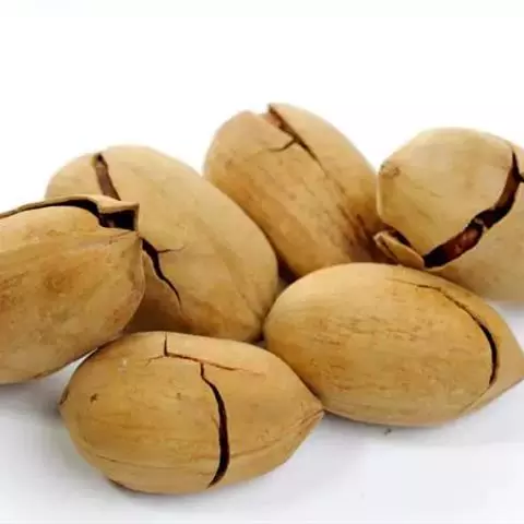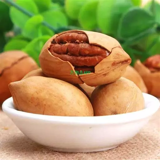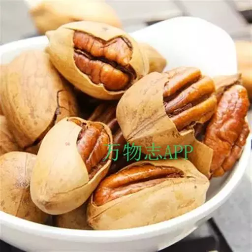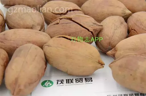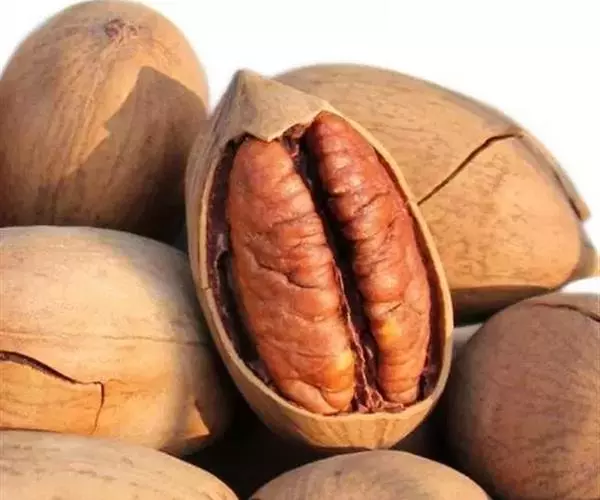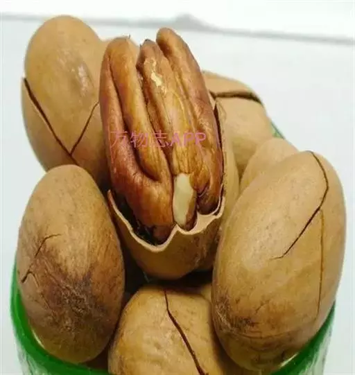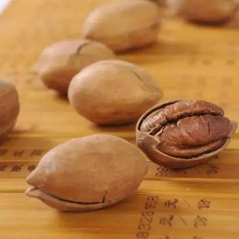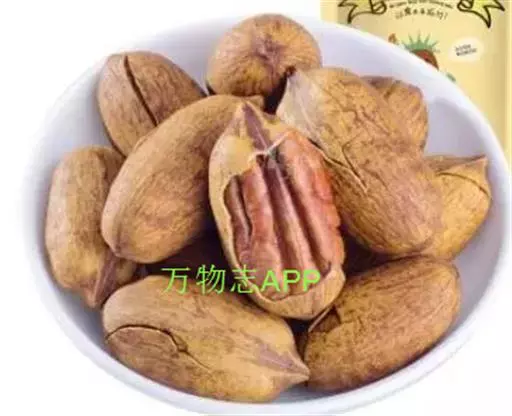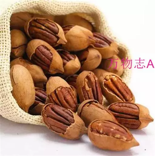 美国山核桃(Carya illinoensis Koch)属胡桃科的山核桃属,又名薄壳山核桃或长山核桃,英文名为Pecan或Hickory,原产北美大陆的美国和墨西哥北部,现已成为世界性的干果类树种之一。由于其种仁有优异的食疗保健价值。比香榧大一号,剥开是像核桃一样的果肉。壳很脆,特别好剥,就跟香榧一样脆,而肉质介于大核桃与小核桃之间。