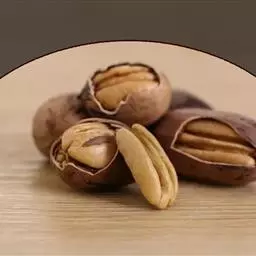 优质碧根果皮很薄,可以用手剥开,果仁的味道界于我们常吃的山核桃和大核桃之间,口感香浓酥脆令人赞不绝口。