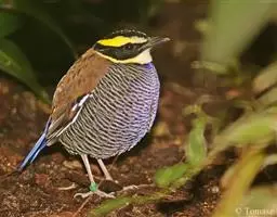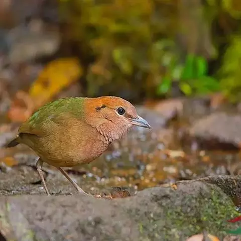 仙八色鸫是雀形目八色鸫科八色鸫属鸟类。雄鸟前额至枕部深栗色,有黑色中央冠纹,眉纹淡黄,…