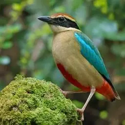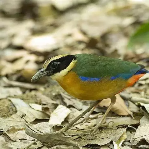 蓝翅八色鸫是雀形目八色鸫科的鸟类。体长17-20厘米,体重类约48-70克,体型圆胖,尾短,腿长,…
