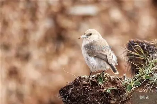 褐背拟地鸦(学名:Pseudopodoces humilis):体长14-18厘米。嘴较细长而稍向下弯曲、黑色。是一种体型甚小的拟地鸦。上体沙褐色,项圈皮黄白色,飞羽灰褐色具沙褐色羽缘。下体近白,眼先斑纹暗色;中央尾羽褐色,外侧尾羽黄白。虹膜深褐色,嘴黑色,脚黑色。