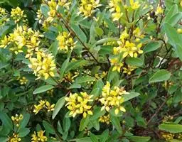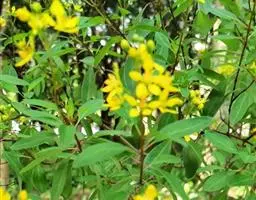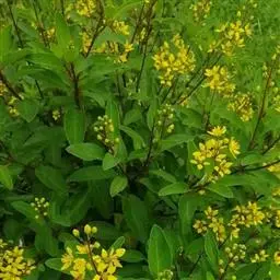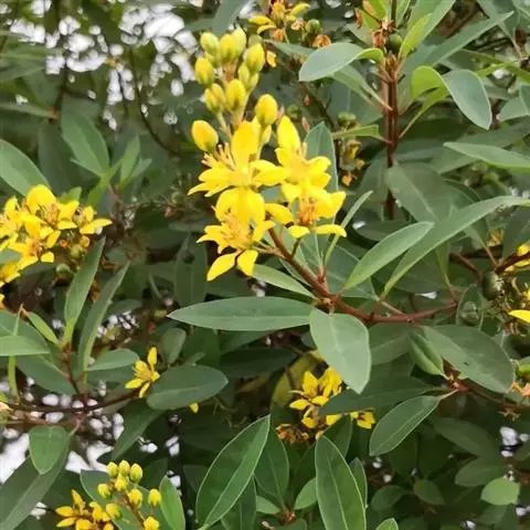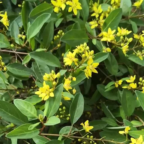 金英常绿灌木,株高约50-160厘米,嫩茎红色。叶片绿色,对生,椭圆形,先端尖,基部楔形,全缘。…