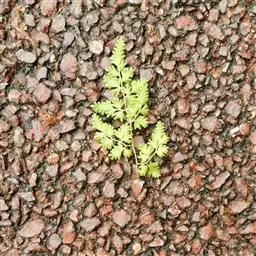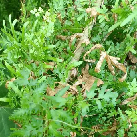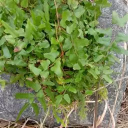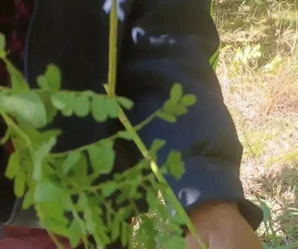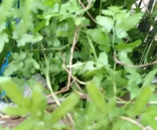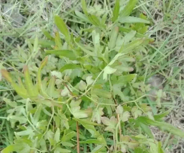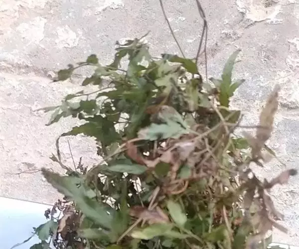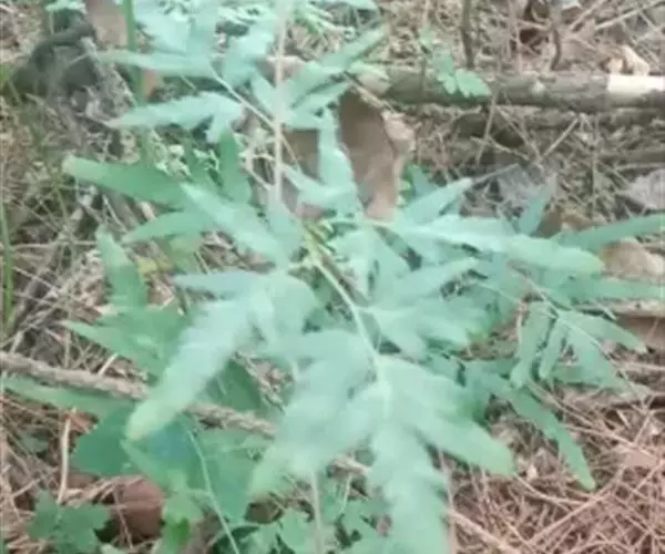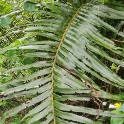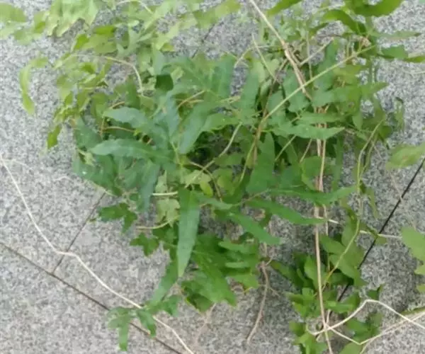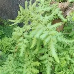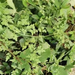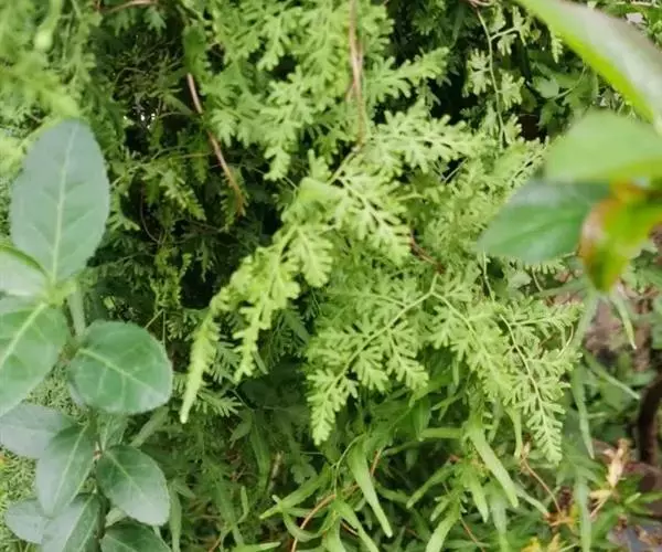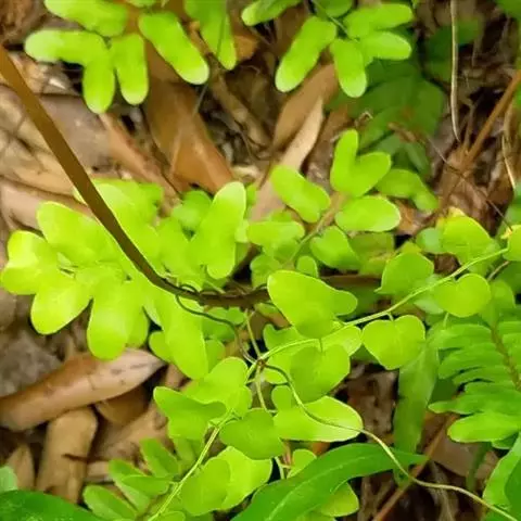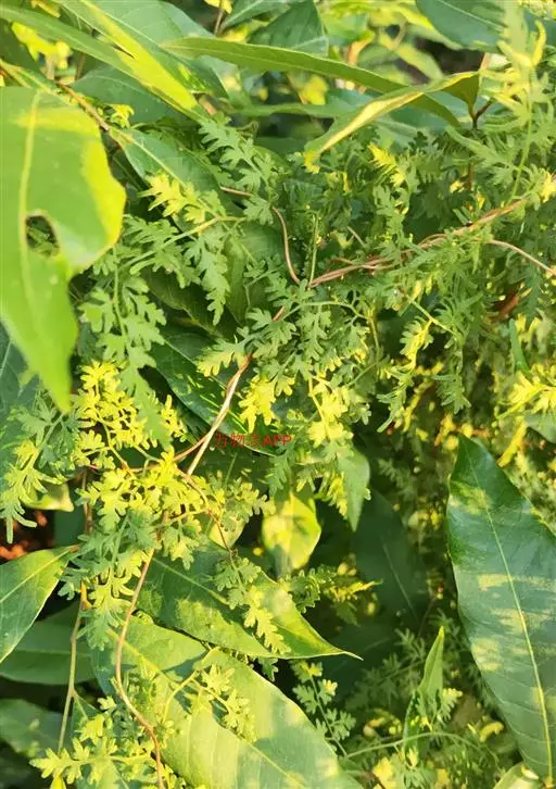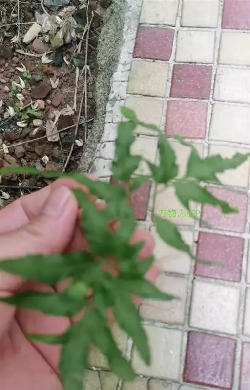 多年生草质藤本,长1~5m。根状茎横走,生黑褐色有节的毛;根须状,黑褐色,坚韧,亦被毛。叶多数,对生于茎上的短枝两侧,二型,纸质,连同叶轴和羽轴有疏短毛:营养叶尖三角形,长、宽各10~300px,二回羽状,小羽片掌壮或3裂,宽3~8mm,边缘有不整齐的细钝锯齿,孢子叶卵状三角形,长、宽各10~500px,多收缩而呈深撕裂状。夏末,小羽片下面边缘生流苏状的孢子囊穗,穗长2~5mm,黑褐色,孢子表面有小疣。