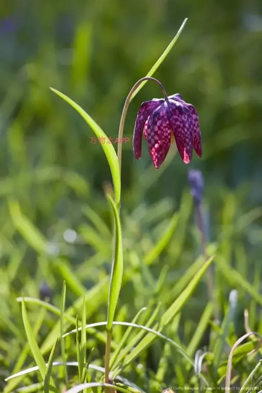花单生茎顶,钟状,下垂,每花具狭长形叶状苞片3枚,先端多少弯曲成钩状。花被片6,通常紫色,较少绿黄色,具紫色斑点或小方格,蜜腺窝在北面明显凸出;蒴果具6纵翅。花期5-7月,果期8-10月。