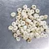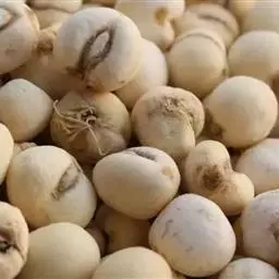 2.平贝:为百合科平贝母的干燥鳞茎。商品多来源于栽培,主产东北。本品外形扁球状,形如算盘珠,高0.5~1cm,直径0.6~2cm。表面乳白色或淡黄白色,外层有鳞叶两瓣,肥厚饱满,大小相近或一片较大,互相抱合,顶端微平或微凹入,稍开裂。中央鳞片小,质坚实而脆,富粉性。平贝与川贝 贝母 最大的区别在于平贝较川贝大,扁平不圆,色常不白,味苦。有用小粒平贝充松贝者,其直径仅约0.5cm,呈圆锥形,形似松贝,但顶端较圆,鳞叶两瓣大小亦极悬殊,大抱小,但小鳞叶仅呈米粒样,只在中部显现,多不到基部(不似松贝之怀中抱月形)。味苦。