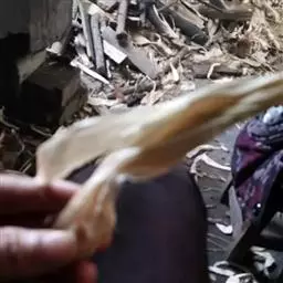 药材性状:多缠绕成团,茎细长,节上生细根,被硬刚毛。单叶对生,叶多破碎,完整的叶片披针状卵形,长1.5~4.5cm,宽4~9mm,表面绿褐色,被硬刚毛。可见小头状花序生于茎顶端,花黄棕色。气微,味微涩。