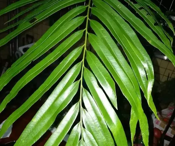 植株高达1米,坚强挺拔。根状茎直立,粗肥,成圆柱状的主轴。叶簇生于顶部;柄长20-40厘米,粗逾5毫米,棕禾秆色,略有光泽,坚硬;叶片长圆形,长40-90厘米,宽20-30厘米,一型,但羽片为二型,一回羽状;羽片15-20对,近对生,斜向上,相距2厘米,有短柄,以关节着生于叶轴上,长15-20厘米,宽1-1.5厘米,披针形或线状披针形,向两端渐变狭,长渐尖头,基部为狭楔形,下部的较长,向顶部稍短,顶生小羽片有柄,边缘遍体为全缘,或向顶端略为浅波状。叶脉粗健,两面明显,二回分歧,小脉平行,达于叶边,叶边稍向下卷。叶为厚纸质,两面光滑,略有光泽,干后绿色或黄绿色。下部数对(多达8对,通常3-4对)羽片为能育,生孢子囊,羽片紧缩为线形,宽仅4毫米,中肋两侧密生圆形的分开的孢子囊穗,深棕色。