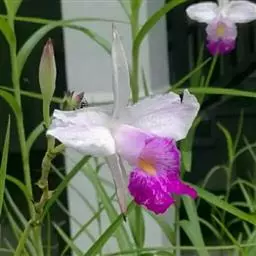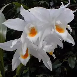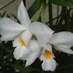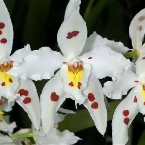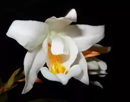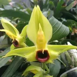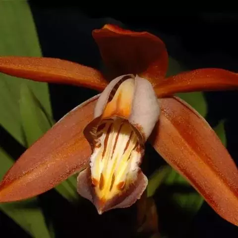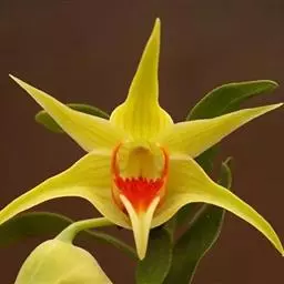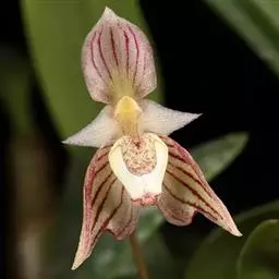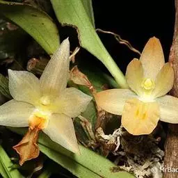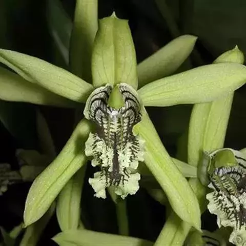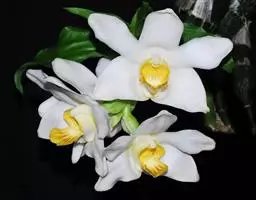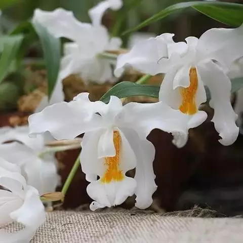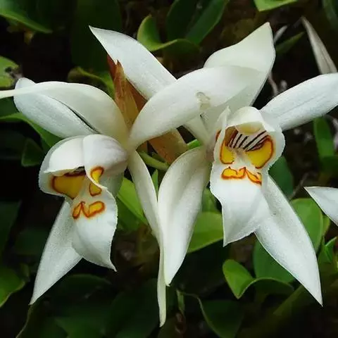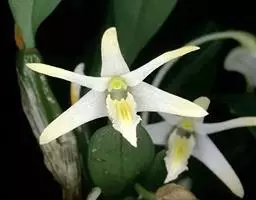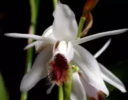 流苏贝母兰(学名:Coelogyne fimbriata Lindl.):根状茎较细长,匍匐,粗1.5-2.5毫米,节间长3-7毫米。假鳞茎狭卵形至近圆柱形,顶端生2枚叶。叶长圆形或长圆状披针形,纸质。花葶从已长成的假鳞茎顶端发出,长5-10厘米;总状花序通常具1-2朵花,花淡黄色或近白色,仅唇瓣上有红色斑纹;花瓣丝状或狭线形,与萼片近等长,宽0.7-1毫米;唇瓣卵形,3裂。蒴果倒卵形。花期8-10月,果期次年4-8月。