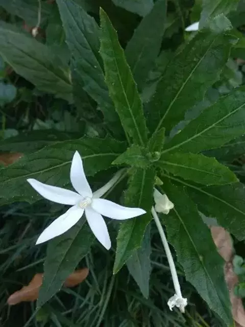 叶片狭长,叶缘呈不规则的深锯齿状,花着生顶部,先端花瓣五裂,像星状。