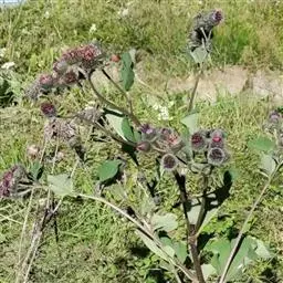 毛头牛蒡是菊科牛蒡属草本植物,有粗状的根;叶互生,心形,具长柄,背面被白色绵毛;头状花序多数,…