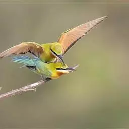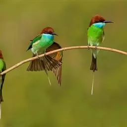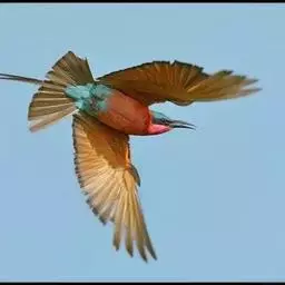 蓝颊蜂虎:是蜂虎科、蜂虎属的鸟类,共有2个亚种。体长27-33厘米,翼展46-49厘米,…