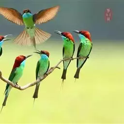 栗喉蜂虎是蜂虎科蜂虎属的鸟类。有热带鸟类羽毛艳丽的特征:喉部是栗红色的,黑色的过眼纹,…