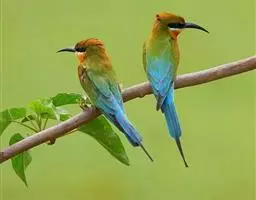 蓝喉蜂虎中型鸟类,体长26~28厘米。头顶至上背栗红色或巧克力色,过眼线黑色,腰和尾蓝色,翼蓝绿色,…