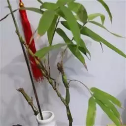 竹条的扦插:黄金间碧竹可采用竹兜育苗的方法。每年的10-11月份开始扦插,采用当年生半木质化的竹条。取回后除去有病虫害的竹条。最好在上午的时候进行采集,把采集的竹条放在阴凉处进行修剪,留4个竹节,竹条上部切口要斜切平滑,下端竹兜要除去竹择,不伤竹眼。用配制好的营养土包在竹兜上(在营养土中加入生根粉以促进竹兜发根),坭团视竹兜的大小而定。采用斜插,直接插在经过消毒的苗圃地上,扦插深度,以留2节竹眼露出土面为宜。扦插的株距5-10厘米,行距15-20厘米为佳。插后压实并浇足水,使插条与土壤密接。
