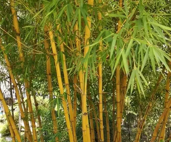 黄金间碧竹,其杆及主枝呈黄色,其节间于分枝一侧之沟槽中常呈鲜绿色,有时其旁侧亦有同样绿色条纹2-3条,故名黄金间碧竹。