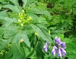 黄草乌:毛茛科,乌头属多年生草本植物,块根椭圆球形或胡萝卜形,茎缠绕,叶片坚纸质,五角形,…
