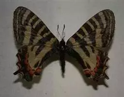 无明显的尾状突起,雌雄差异不大,雄性青带凤蝶后翅内部生有密密的白毛。