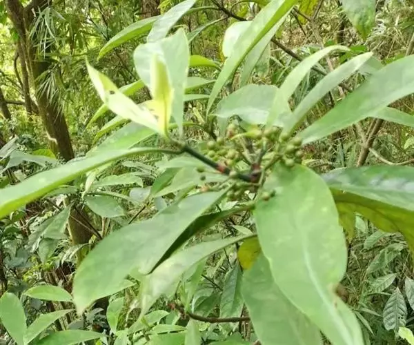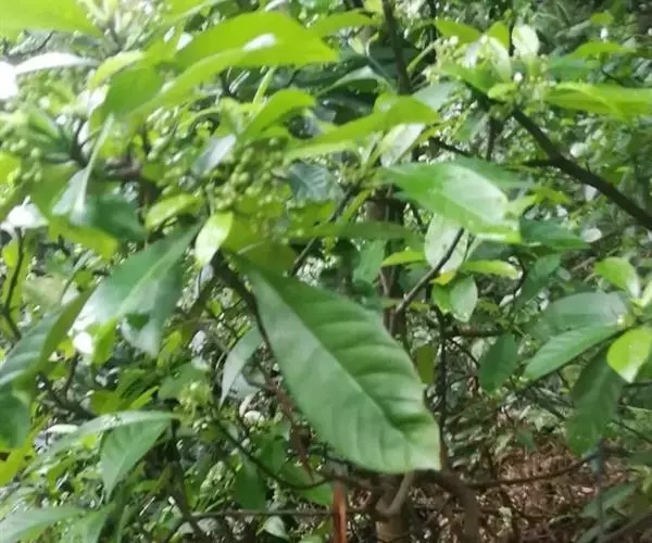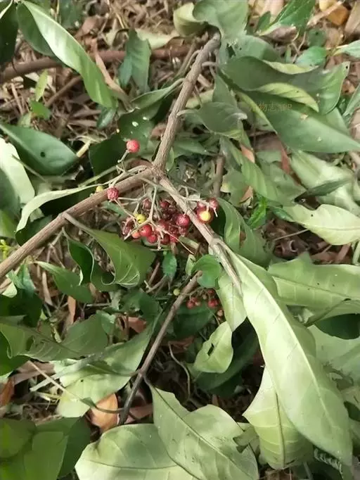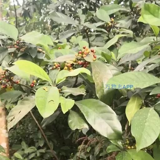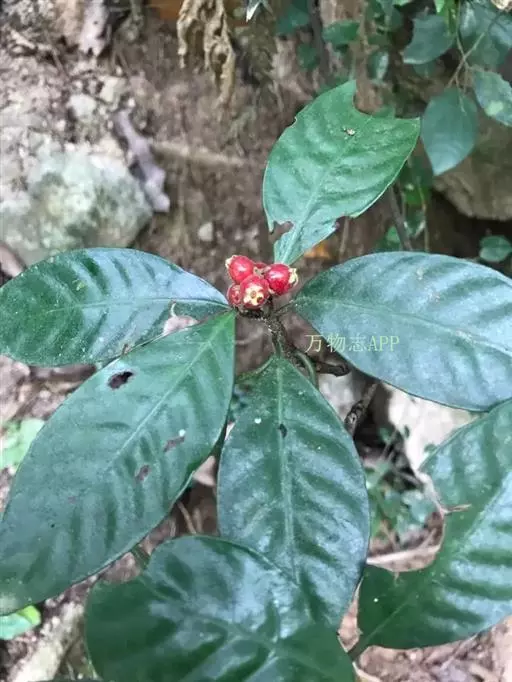 2、灌木或小乔木,高0.5-5米。叶对生,纸质或革质,长圆形、椭圆状长圆形或倒披针状长圆形,稀长圆状倒卵形,有时稍歪斜,长5-23.5厘米,宽2-9厘米,顶端渐尖、急渐尖或短尖而尖头常钝,基部楔形,全缘,鲜时稍光亮,干时常暗红色或在下面褐红色而上面淡绿色,中脉和侧脉在上面凹下,在下面凸起,脉腋内常有束毛,侧脉5-15对,弯拱向上,近叶缘处不明显联结;叶柄长0.7-5厘米,无毛或极稀有极短的柔毛;托叶膜质,短鞘状,顶部不裂,长6-8毫米,宽6-9毫米,脱落。聚伞花序通常顶生,无毛或极稀有极短的柔毛,多花,总花梗常极短,近基部三分歧,常成伞房状或圆锥状,长2-10厘米,宽3-15厘米;花梗长1-2.5毫米;萼管杯状,长约2毫米,宽约2.5毫米,檐部扩大,近截平或不明显地5齿裂;花冠白色,冠管长2-3毫米,宽约2.5毫米,喉部被白色长柔毛,花冠裂片近三角形,长2-2.5毫米,宽约1.5毫米,开放时反折;雄蕊与花冠裂片互生,花药长圆形,伸出,花丝长1-2毫米;柱头2裂,伸出或内藏。核果球形或宽椭圆形,长5-8毫米,直径4-7毫米,有纵棱,红色;果柄长1.5-10毫米;小核背面凸起,具纵棱,腹面平而光滑。花果期全年。