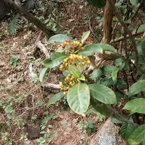 别名:九节(植物学名词审查本)山打大刀、大丹叶、暗山公(生草药性备要),暗山香、山大颜、吹筒管(岭南采药录),刀伤木(常用中草药手册),牛屎乌、青龙吐雾(台湾植物志),九节木(广东)图版14:1-4