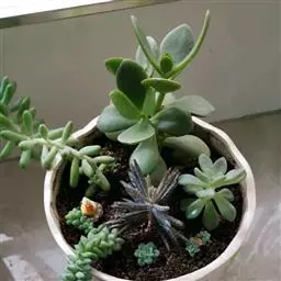 待扦插苗根系长度达到2-3厘米时,选取根系生长良好的苗木上盆。盆器最好选用排水性、透气性良好的紫砂盆。装盆时,先在盆底放入2-3厘米厚的粗粒基质或者陶粒作为滤水层,其上撒上一层充分腐熟的有机肥料,厚度约为1-2厘米,再盖上一层营养土,厚约8-10厘米,然后放入植株,把肥料与根系分开,避免烧根。上盆用的培养土可用腐叶土3份、壌土3份、粗砂3份、草木与骨粉混合物混合使用。上完盆后浇一次透水,并放在略阴环境养护一周,待完全成活后移植阳台等阳光充足的地方。以后每年初春换盆一次,加入肥土,以提高土壌肥力及透气性。