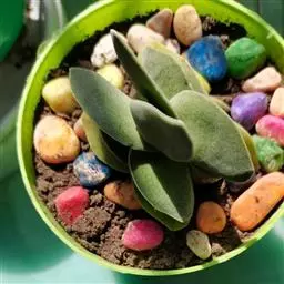⑵其根系欠发达,地上部分宽大,有些头重脚轻,器皿底部可用卵石、彩石固定。