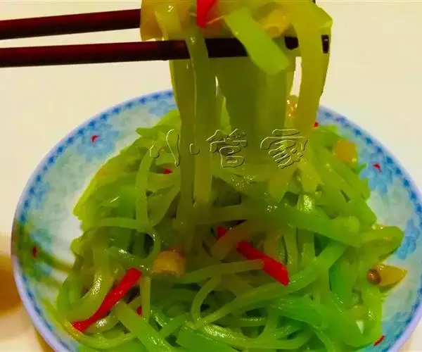 3、淋上麻油,清爽开胃的爽口莴笋丝就拌好了。