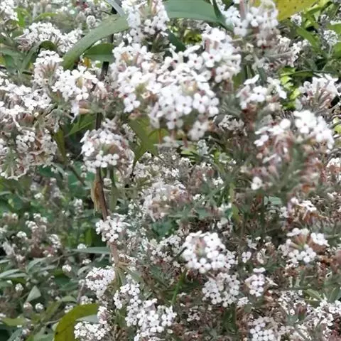 总状花序窄而长,由多个小聚伞花序组成,长5-25厘米,宽0.7-2厘米,单生或者3至数个聚生于枝顶或上部叶腋内,再排列成圆锥花序;花梗长0.2-2毫米;小苞片线形,短于花萼;花萼钟状或圆筒状,长1.5-4.5毫米,外面被星状短柔毛或短绒毛,内面无毛,花萼裂片三角形,长为花萼之半;花冠芳香,白色,有时淡绿色,花冠管圆筒状,直立,长3-6毫米,外面近无毛或被稀疏星状毛,内面仅中部以上被短柔毛或绵毛,花冠裂片近圆形,长1-1.7毫米,宽1-1.5毫米,广展,外面几无毛;雄蕊着生于花冠管喉部,花丝极短,花药长圆形,基部心形,花粉粒长球状,具3沟孔;雌蕊长2-3毫米,无毛,子房卵形或长卵形,长1-1.5毫米,宽0.8-1毫米,花柱短,柱头头状,2裂。蒴果椭圆状,长3-5毫米,直径1.5-3毫米;种子灰褐色,椭圆形,长0.8-1毫米,宽0.3-0.4毫米,两端具短翅。花期1-10月,果期3-12月。