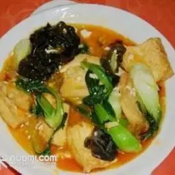 山珍豆腐是一道川菜,主料有豆腐,调料有大葱、姜、植物油、酱油、料酒。