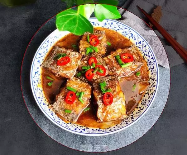 3、把姜片、迆鱼、水、酱油、糖、味精全入锅煮滚后,沥掉姜与迆鱼,备用。