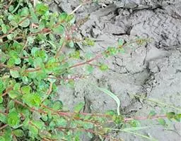 一年生草本,多分枝,节上生根,茎常略具4棱,基部常匍匐,上部直立或稍披散。叶对生,无柄或近无柄,倒卵状椭圆形或矩圆状倒卵形,长4-17毫米,宽3-8毫米,侧枝上的叶仅长约5毫米,顶端近圆形或钝形而有小尖头,基部楔形或渐狭,下面,叶脉明显,边缘为软骨质。