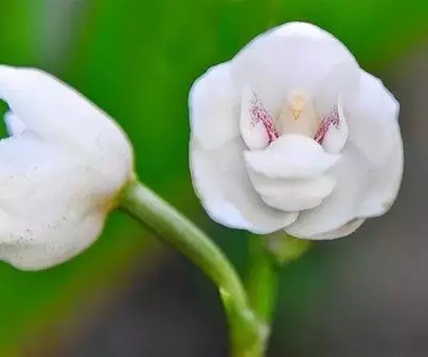 鸽子兰花期为每年11月自隔年4月,花梗自茎基部抽出,可长达1.5至2米,其花序为螺旋型无限花序,由下往上开花绽放,花色为白色,具有淡淡的清香。因开花的时候,其花朵内部的蕊柱与唇瓣紧密相贴,看起来就像一只白鸽停坐在里面,因而得其美名。
