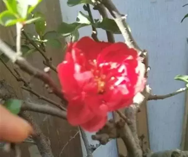 落叶灌木,高达2米,枝条直立开展,有刺;小枝圆柱形,微屈曲,无毛, 皱皮木瓜 紫褐色或黑褐色,有疏生浅褐色皮孔;冬芽三角卵形,先端急尖,近于无毛或在鳞片边缘具短柔毛,紫褐色。叶片卵形至椭圆形,稀长椭圆形,长3-9厘米,宽1.5-5厘米,先端急尖稀圆钝,基部楔形至宽楔形,边缘具有尖锐锯齿,齿尖开展,无毛或在萌蘖上沿下面叶脉有短柔毛;叶柄长约1厘米;托叶大形,草质,肾形或半圆形,稀卵形,长5-10毫米,宽12-20毫米,边缘有尖锐重锯齿,无毛。花先叶开放,3-5朵簇生于二年生老枝上;花梗短粗,长约3毫米或近于无柄;花直径3-5厘米;萼筒钟状,外面无毛;萼片直立,半圆形稀卵形,长3-4毫米。宽4-5毫米,长约萼筒之半,先端圆钝,全缘或有波状齿,及黄褐色睫毛;花瓣倒卵形或近圆形,基部延伸成短爪,长10-15毫米,宽8-13毫米,猩红色,稀淡红色或白色;雄蕊45-50,长约花瓣之半;花柱5,基部合生,无毛或稍有毛,柱头头状,有不显明分裂,约与雄蕊等长。果实球形或卵球形,直径4-6厘米,黄色或带黄绿色,有稀疏不显明斑点,味芳香;萼片脱落,果梗短或近于无梗。花期3-5月,果期9-10月。