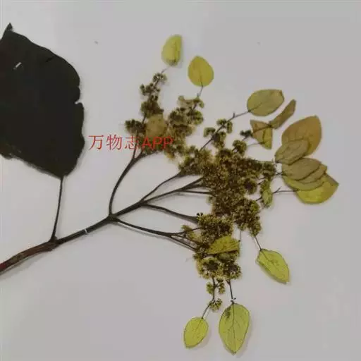 伞房状聚伞花序密被褐色、紧贴短柔毛,结果时毛渐稀少;不育花萼片单生或偶有2-3片聚生于花柄上,卵状披针形、披针形或阔椭圆形,结果时长3-7厘米,宽2-5厘米,黄白色;孕性花萼筒陀螺状,长1.5-2毫米,宽1-1.5毫米,基部略尖,萼齿三角形,长约0.5毫米;花瓣长卵形,长2-3毫米,先端钝;雄蕊近等长,盛开时长4.5-6毫米,花药近圆形,长约0.5毫米;子房近下位,花柱和柱头长约1毫米。蒴果钟状或陀螺状,较小,全长6.5-8毫米,宽3.5-4.5毫米,基部稍宽,阔楔形,顶端突出部分短圆锥形,长约1.5毫米;种子褐色,连翅轮廓纺锤形或近纺锤形,扁,长3-4毫米,宽0.6-0.9毫米,两端的翅近相等,长1-1.5毫米。花期6-7月,果期10-11月。