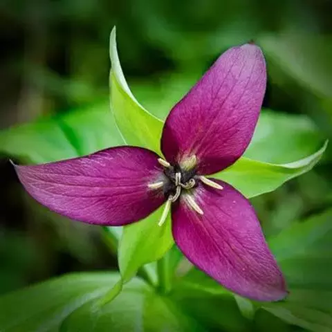 吉林延龄草(学名:Trillium camschatcense Ker Gawl.)是百合科延龄草属植物,茎丛生于粗短的根状茎上,高35-50厘米。叶菱状扁圆形或卵圆形。花梗长1.5-4厘米;外轮花被片绿色。浆果卵圆形,直径1.8-2.8厘米。花期6月,果期8月。
