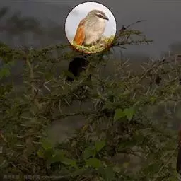 画眉给红翅凤头鹃喂食(汤太平摄影)