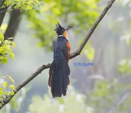 斑翅凤头鹃: 成鸟具羽冠,上体及头侧、翅、尾等黑色,具铁绿色亮辉,尾羽端部具白斑,两侧者形宽,…