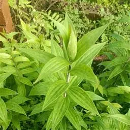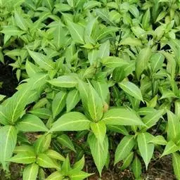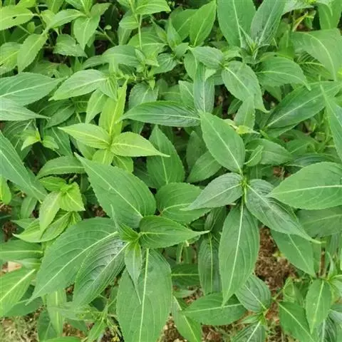多年生草本;具根茎,侧根肉质增厚。茎高20-40厘米,微粗糙,节稍膨大。叶对生,无柄或几无柄;叶片矩圆状披针形,长4-18厘米,宽1.5-3厘米,顶端渐尖,基部狭楔形,侧脉7-9对,上面无毛,下面脉上被微毛,边缘具钝齿或微波状。