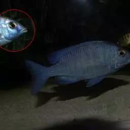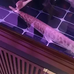 随着年龄的增长,巨骨舌鱼会由尾部向背部逐渐发色。先是出现红点,最后整个上半身都能变成紫红色。