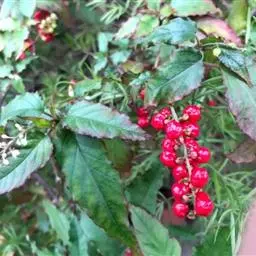 蕾芬,别名数珠珊瑚、小商陆、胭脂草, 半灌木,高30-100厘米。茎直立,枝开展,幼时被短柔毛。