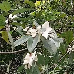 乐东拟单性木兰 常绿乔木,高达30米,胸径30厘米,树皮灰白色;当年生枝绿色。叶革质,狭倒卵状椭圆形、倒卵状椭圆形或狭椭圆形,长6-11厘米,宽2-3.5 (-5) 厘米,先端尖而尖头钝,基部楔形,或狭楔形;上面深绿色,有光泽;侧脉每边9-13条,干时两面明显凸起,叶柄长1-2厘米。